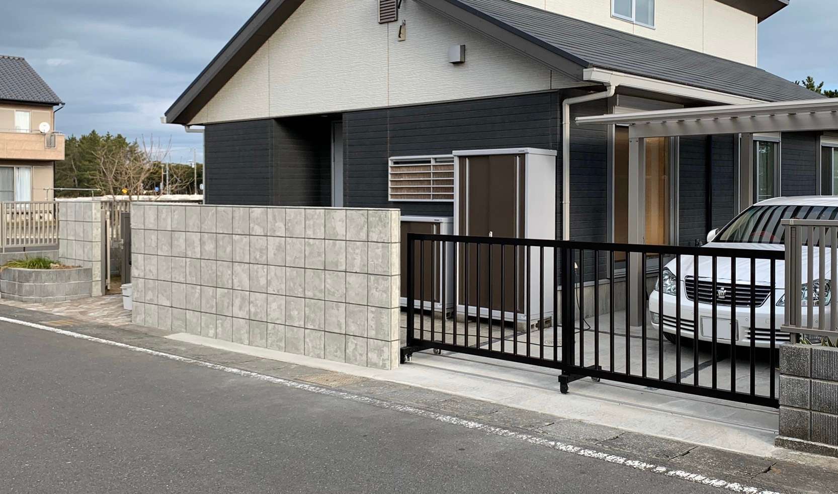 戸建て 外構工事 大洗町 Y様邸 外構工事 ローラーストーン 門袖壁、ゲート、カーポート、スクリーンフェンスの施工を行っております。門袖壁や玄関アプローチ部分にはローラーストーンを用いておしゃれに仕上げております。 前の施工事例 店舗 茨城県水戸市 美容院のエントランス 次の施工事例 戸建て ローラーストーンの施工 茨城県東海村